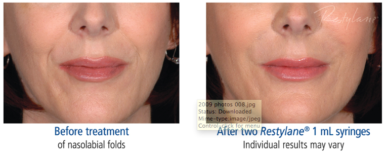 Restylane is a clear gel formulation of hyaluronic acid that is specifically formulated to act like your body's own naturally produced hyaluronic acid, helping to visibly correct moderate to severe facial wrinkles and folds, including the lines that run from your nose toward the corners of your mouth (nasolabial folds) and the lines that run from the corners of your mouth toward the chin (marionette lines).